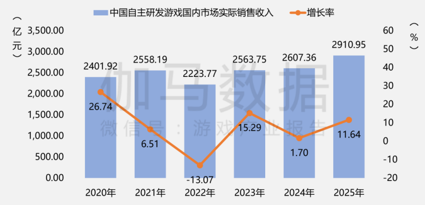 报告显示,2025年,国内游戏市场实际销售收入预计达3507.89亿元,同比增长7.68%;用户规模6.83亿,同比增长1.35%,两项数据均为历史新高点。